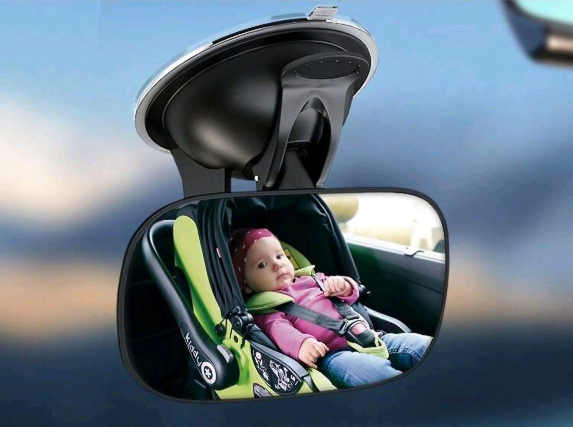 This mirror is installed on the front shield and oriented towards the baby in the back seat, without affecting the orientation of the car mirror.