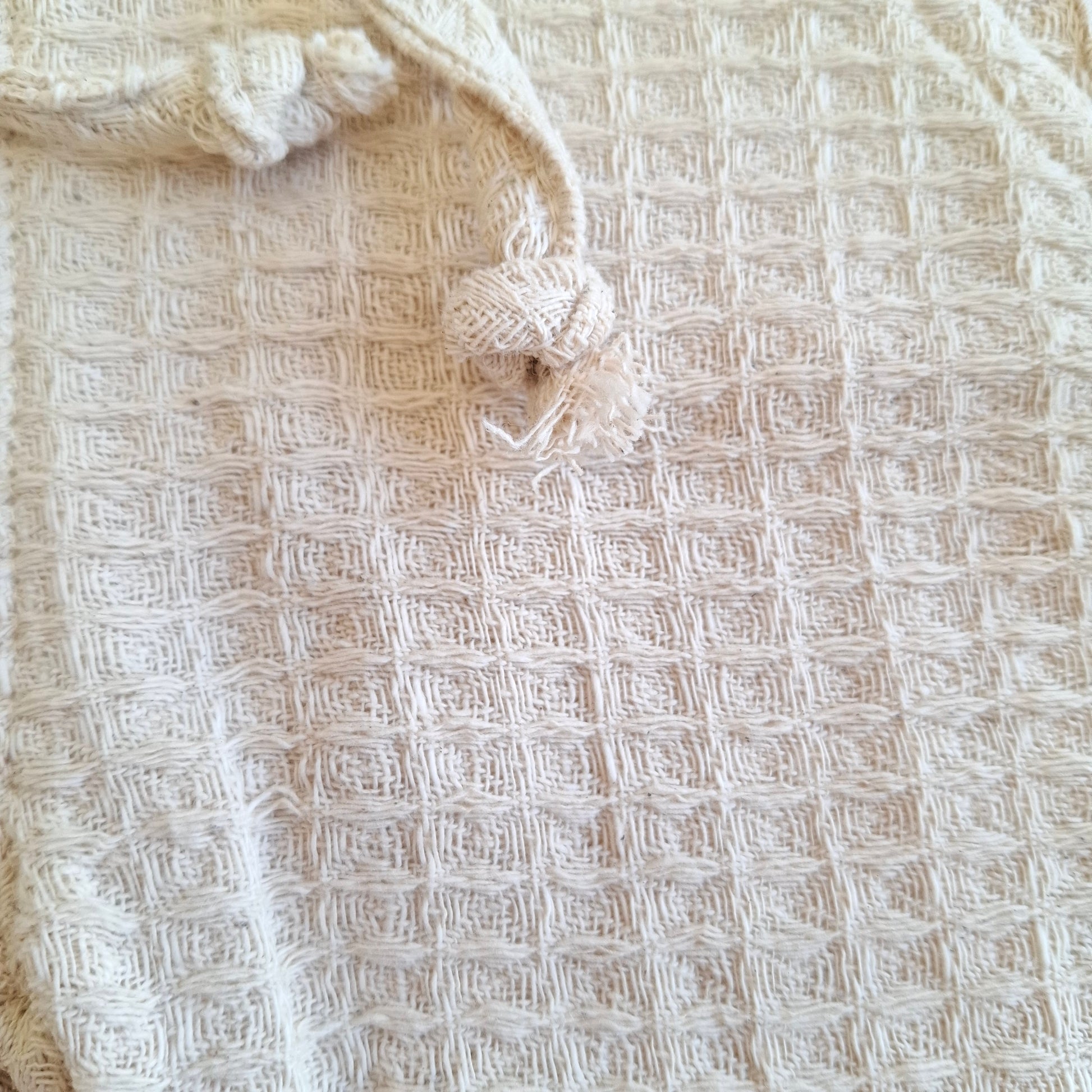 Cream button-down shirt paired with cozy textured waffle-knit pants